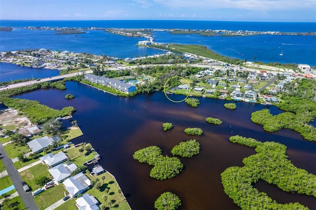 One or more photo(s) has been virtually staged. Welcome to coastal living at its finest. This beautiful 3-bedroom, 3-bath waterfront home is nestled on an oversized lot along scenic Godfrey Creek, offering serene views, exceptional privacy, and direct access to open water with just one fixed bridge. Boaters will appreciate the private dock, perfect for launching sunset cruises or day trips to the Gulf. Step into your private oasis featuring a oversized in-ground pool and a spacious screened lanai with a full pool bath, ideal for outdoor entertaining. The durable metal roof adds peace of mind, while the open floor plan effortlessly blends indoor and outdoor living. Located just minutes from Manasota Key and all three of its pristine beaches-Englewood Beach, Blind Pass Beach, and Stump Pass Beach, this home delivers the best of the Florida lifestyle. Whether you're enjoying a quiet morning on the water or entertaining guests in your tropical backyard retreat, 150 Crestview Dr offers the perfect blend of elegance, comfort, and coastal charm.
